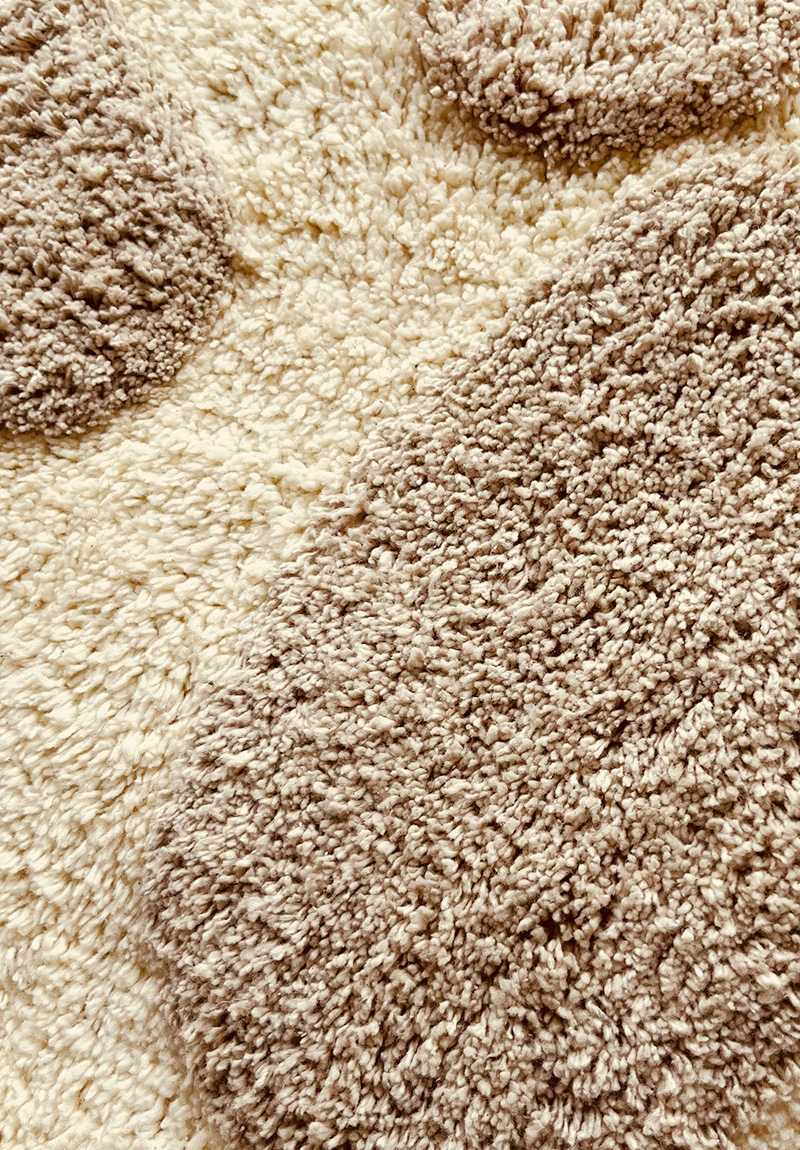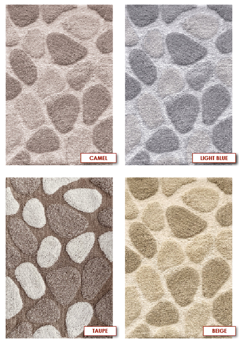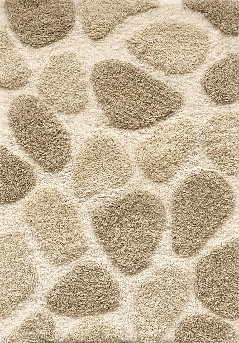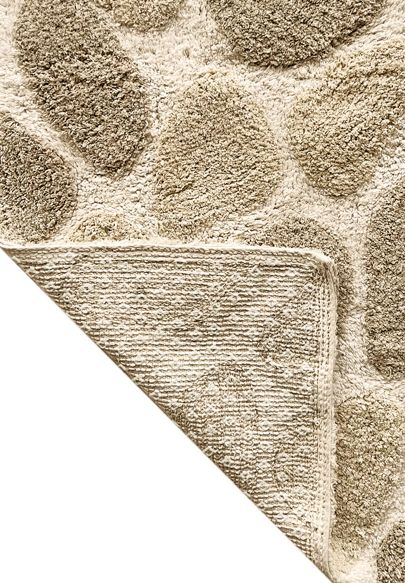 Tappeto Sassi realizzato in cotone 100%, effetto rilievo, con fondo con diamanti in lattice antiscivolo. Originale tappeto bagno che arreda con naturalezza ed eleganza.