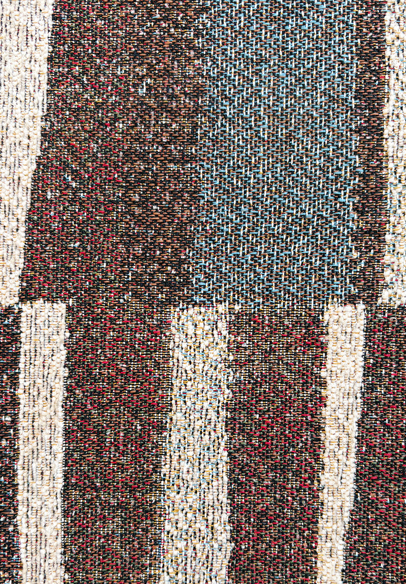 Tappeto/passatoia da cucina antiscivolo e lavabile, in morbido cotone ciniglia. Il tappeto Maya,  presenta un design geometrico a strisce multicolori in tonalità neutre con accenti di colore. Il motivo patchwork crea un effetto moderno e dinamico che si adatta a qualsiasi cucina classica o moderna.
