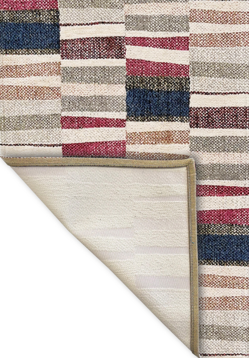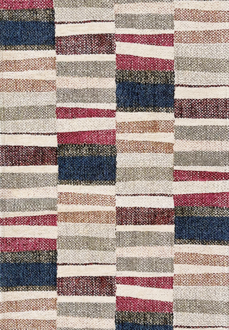 Tappeto/passatoia da cucina antiscivolo e lavabile, in morbido cotone ciniglia. Il tappeto Maya, presenta un design geometrico a strisce multicolori in tonalità neutre con accenti di colore. Il motivo patchwork crea un effetto moderno e dinamico che si adatta a qualsiasi cucina classica o moderna.